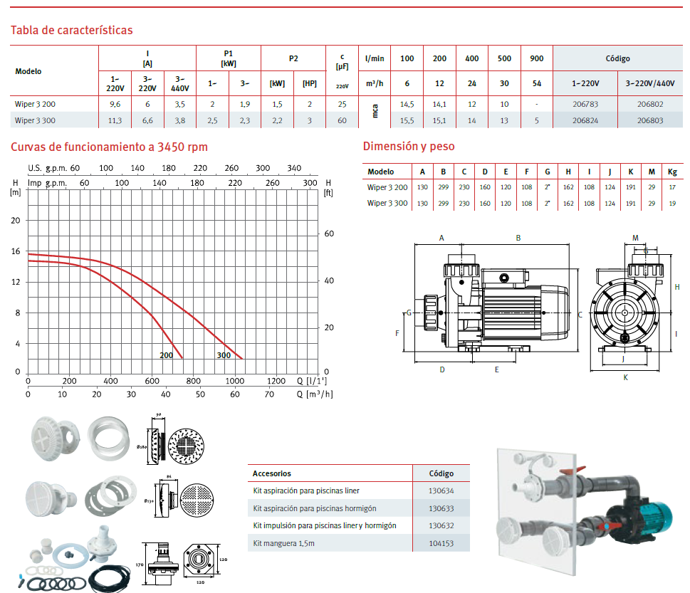 WIPER 3 200M SPA PUMP, 2 HP, 220 V / 206783 - BOES0074