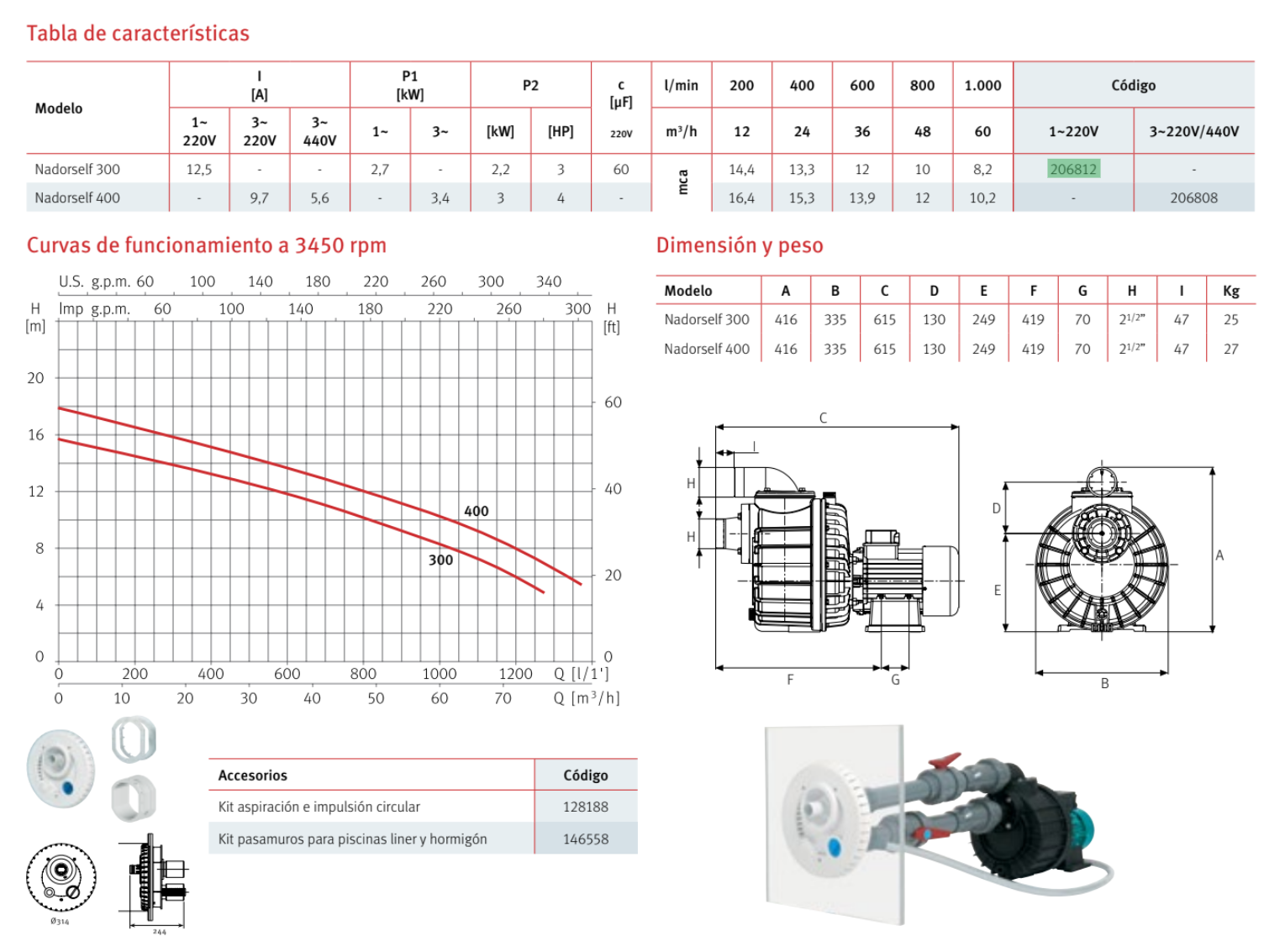 BOMBA DE PISCINA NADORSELF 300M, 3 HP, 220 V / 206812 - BOES0071