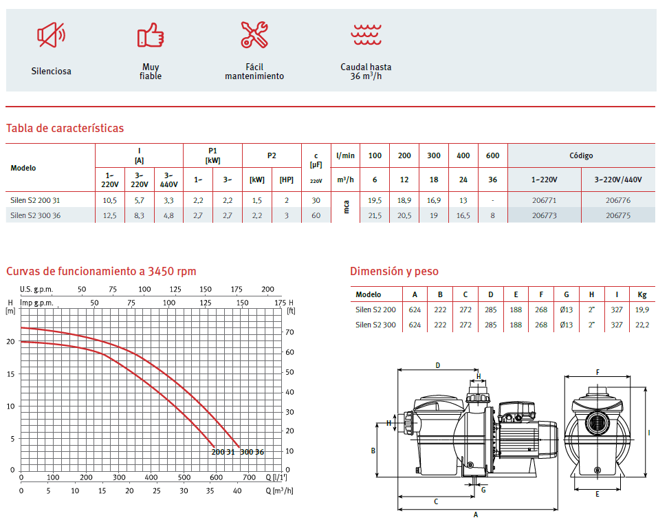 SILEN S2 200 31 POOL PUMP, 2 HP, 220 V, 1F / 136543 / 206771 - BOES0065