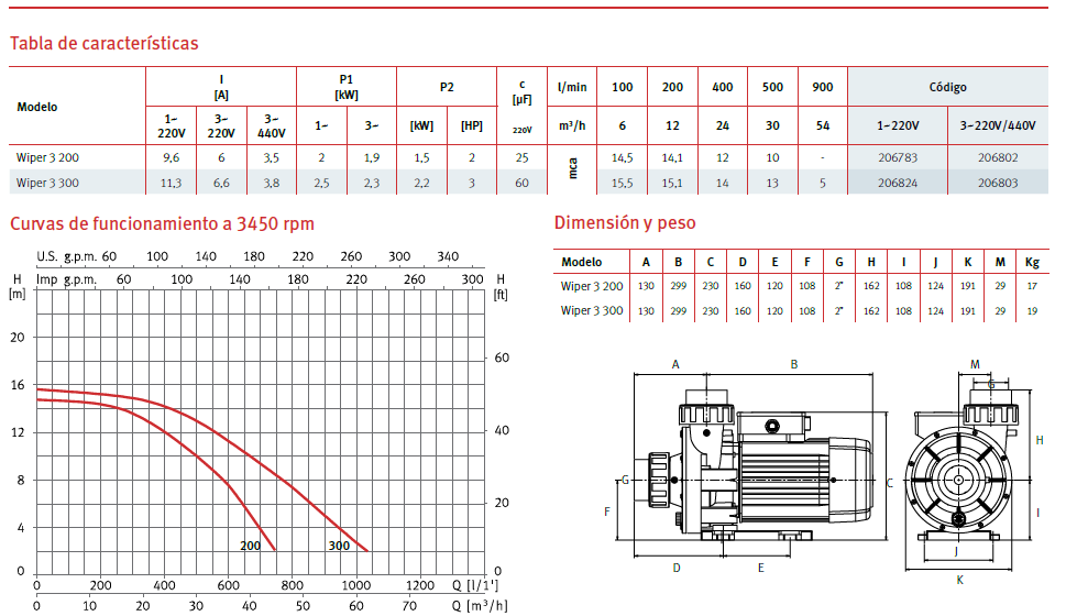 WIPER 3 300M SPA PUMP, 3 HP, 220 V / 20682 - BOES0348
