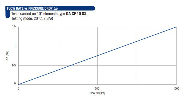 The cartridge is available in 3.5" x 10" sizes and is effective with a maximum nominal capacity of 90 l/h. QA CF SX water softening filters are made from materials suitable for use with potable water.