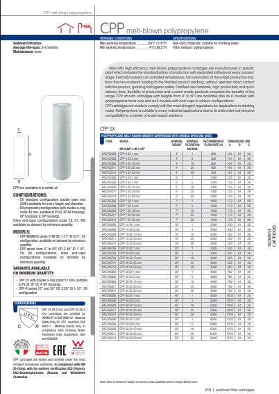 MELTBLOWN CPP SX (DOE) DEPTH FILTRATION CARTRIDGES MADE OF POLYPROPYLENE FOAM OFFER ALL THE ADVANTAGES OF HIGH EFFICIENCY FILTRATION.