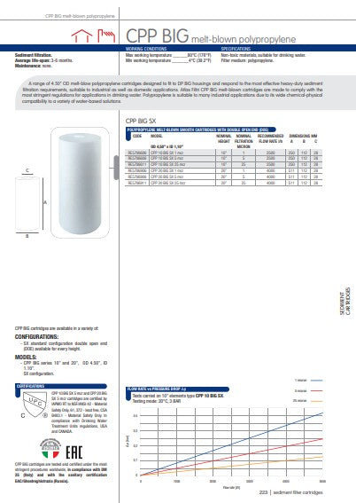 Meltblown CPP Big SX (DOE) depth filtration cartridges made of polypropylene foam offer all the advantages of high-efficiency filtration. Specially designed for DP Big housings.