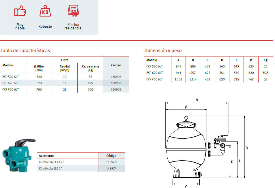 ESPA POOL SAND FILTER, MODEL FKP 520 6LT (SAND NOT INCLUDED) / 130906 - PFES0007