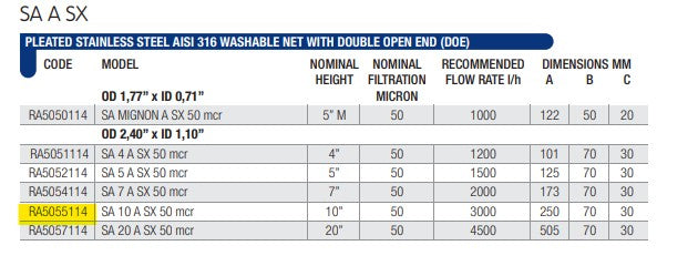 STAINLESS STEEL FOLDING CARTRIDGE SA 10 TO SX 50 MCR / RA5055114 - FPAF0023