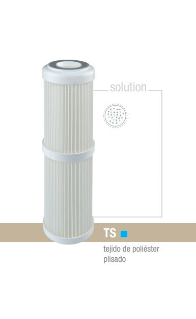 TS SX PLEATED FILTER CARTRIDGES ARE MANUFACTURED FROM POLYESTER FABRIC WHICH GUARANTEES A LARGE FILTERING SURFACE AND A FILTRATION DEGREE OF 50 MICRONS.