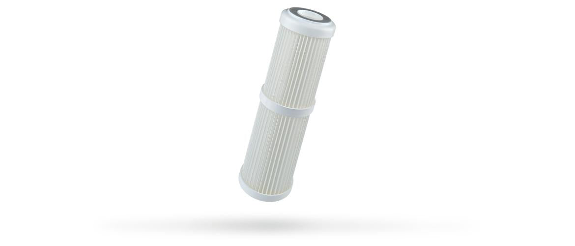 They are characterized by a longer lifespan and low pressure drops. Pleated filter cartridges are available in 2.5" x 10" sizes. Recommended maximum capacity is 4,000 l/h.