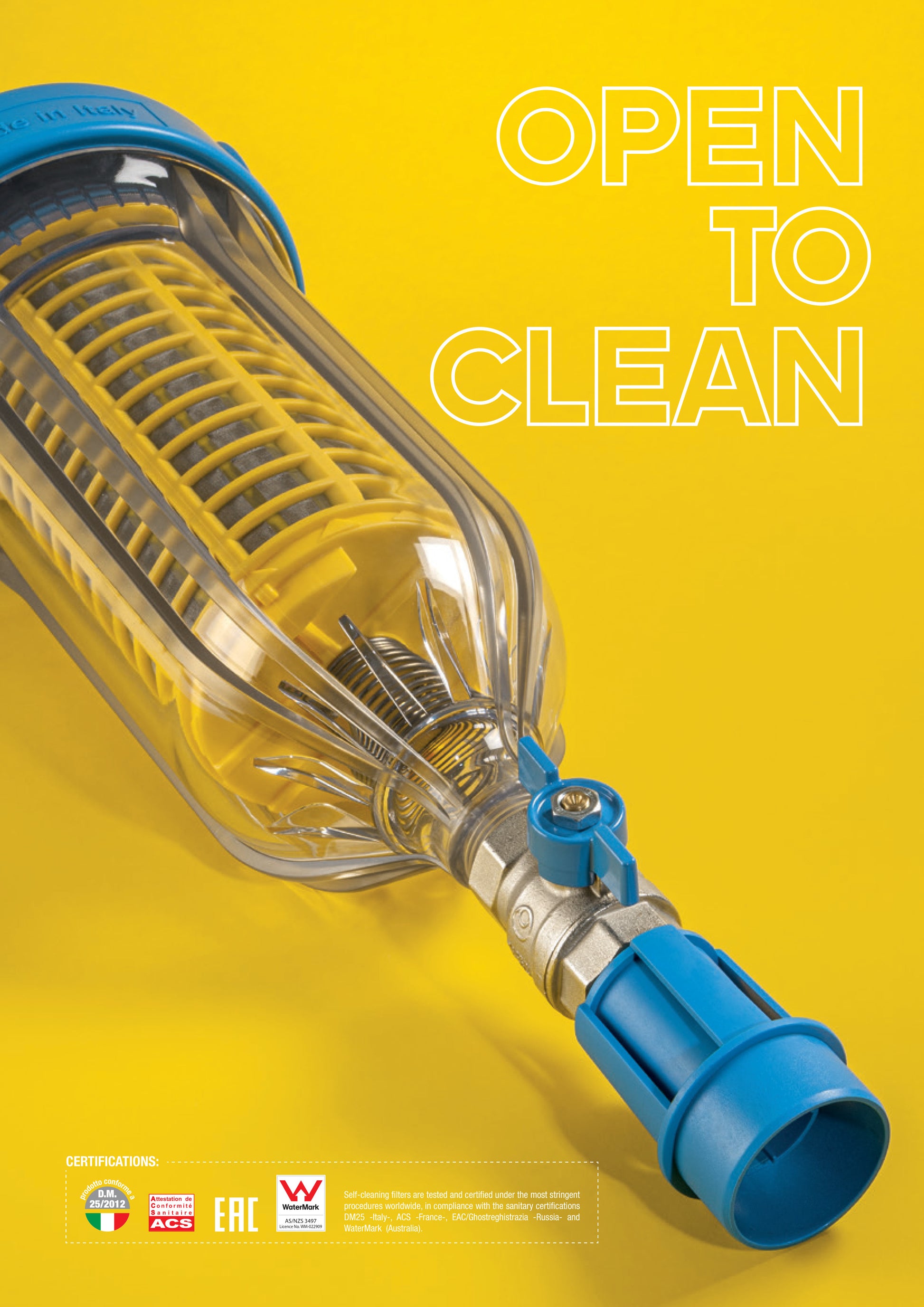 Includes a 90-micron Hydra self-cleaning filter. For subsequent filtration stages, Atlas Filtri's various options for sediment and activated carbon filters can be added, depending on the application's needs.