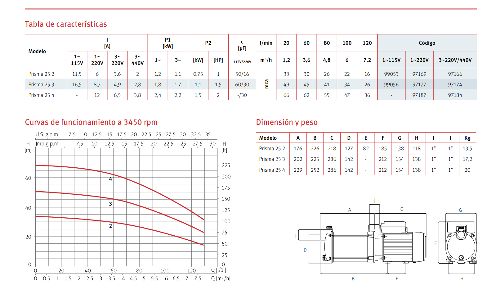 BOMBA CENTRIFUGA PRISMA 25 4, 2 HP, 220/440 V, 3F