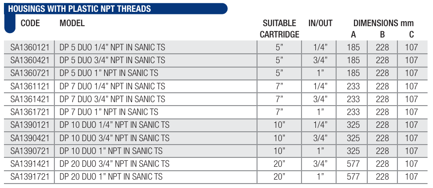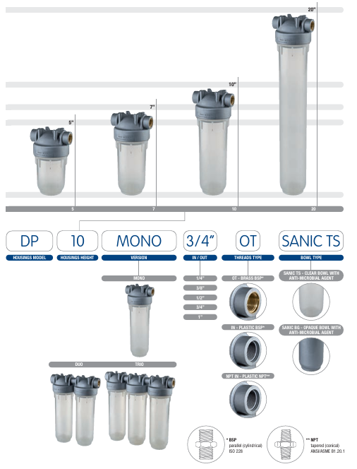 CARCASA CON MICROBAN DP 10 DUO 3/4 NPT IN SANIC BG / SA1390422 -FPAF0160