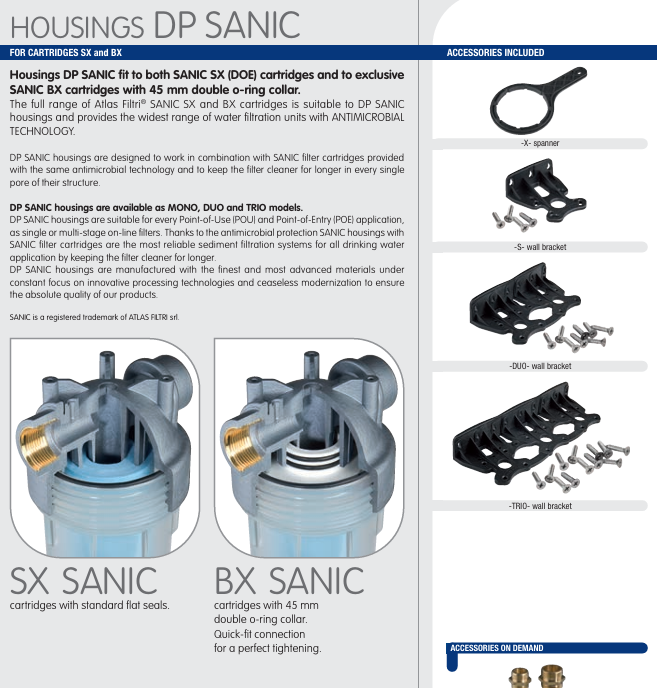 - Compatibles con cartuchos SANIC SX (DOE) y SANIC BX (SOE – junta tórica 222)