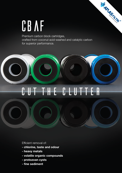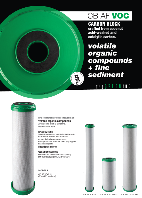 Cartuchos para la filtración de compuestos orgánicos volátiles, cloro, olores y sabores desagradables y sedimentos finos.