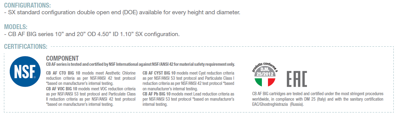 - Cartuchos BIG con diámetro exterior de 4.5”