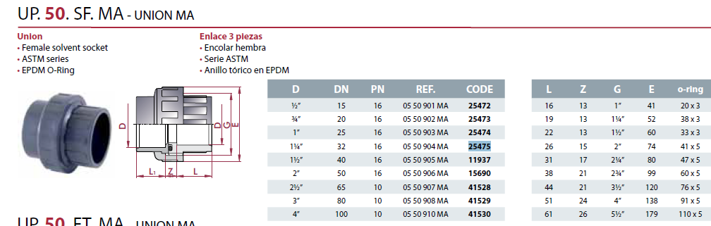 UNION DE TOPE CEPEX 1-1/4" / 25475 - MIOM0232